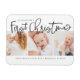 A design na frente consiste na tipografia cursiva lúdica de "Primeiro Natal". Adicione uma foto personalizada do seu novo bebê e adicione o nome do bebê e da família. Este design é moderno, chique, brincalhão e divertido.
