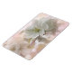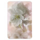 Um ímã flexível com uma fotografia com um galho de macieira exibindo suas lindas flores brancas de maçã.