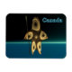 Uma imagem fractal em tons castanhos sugerindo um caçador Inuit altamente estilizado, vestindo roupas tradicionais de pele, segurando um arpão com cabeça de marfim. A imagem é sobreposta a um fundo que representa o inverno polar escuro. "Canadá" aparece em azul e branco brilhantes.