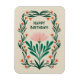 Parabéns, Magneta de Aniversário, com um quadro floral e uma ilustração floral no meio.