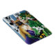 Um Dryad segurando um buldogue francês numa floresta de pássaros