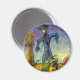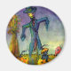 Espantalho de chapéu alto, abóboras e cena do gato-jack de salto para imã de geladeira!