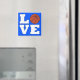 Uma imã de geladeira quadrada adorável para jogadores de basquete, treinadores e fãs, com o LOVE impresso em letras quadradas em negrito e um gráfico de basquete no lugar do Excelente O para decorar a casa ou escritório!