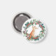 Uma raposa bonita se senta numa coroa de Natal.