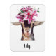 Minha arte digital de uma cabra vestindo lírios de stargazer e lírio do vale em sua cabeça.