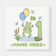 Primeiro sapo de salto verde giro de aniversário com lagoa, lagos, libélulas e balões. O texto diz "Eu tenho 1". Sapos, sapos e coisas anfíbios.
