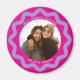 Personalize this circle magnet with your photo and descriptive text to create one of a kind magnet gifts for friends, parents and grandparents. The wavy line bottle cap style squiggle is chic and trendy in lilac purple on a hot pink magenta background. Create your own custom magnet by using the blue edit design button to change the colors and fonts to suit your style completely.