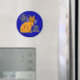 Esta imã de geladeira de trocadilho de gato mostra uma imagem de desenho animado de um gatinho laranja e a frase original, punny, "Eu sou Feline Fine. Não sou Leão!" É a design perfeita e humorística para o amante de gatos ou a senhora de gatos malucos (ou cavalheiro) em sua vida. O fundo azul é personalizável. Também está disponível em nossa loja em outros itens.