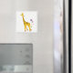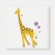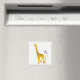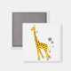 Magneta engraçada com girafa fofinha borbulhando em uma flor violeta e segurando algumas flores com a cauda enquanto patinava com skates de rolo que são feitos de flores. Você também pode comprar uma camisa engraçada com esta girafa fofa: Há um cartão de aniversário com a girafa: