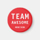 Funny Team Awesome Bright Red Personalized Name Magnets features the text "Team Awesome" with your personalized name below on a bright red background. Personalize by editing the text in the text box provided. Designed for you by ©Evco Studio www.zazzle.com/store/evcostudio