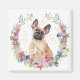 Este ímã mostra uma imagem de uma coroa primavera em cores de cor rosa suave, azul, dourado, verde e creme. No centro está um belo retrato aquoso de um adorável Bulldog Francês com um olhar inquisitivo. Pequeno confete de ouro dá um brilho sutil ao fundo. Perfeito para quem ama um francês!
