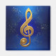 O G ou Treble se decole em ouro, com aspersão de pequenas notas ao seu redor, imagem criada com inteligência artificial. Expresse a sua essência musical quando enviar a um amigo uma nota sobre estas cartas.