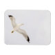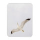 Uma imagem sutil apresentando uma gaivota voando acima em um céu tranquilo.