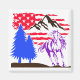Cavalo da Montanha Selvagem em Galopagem Roxa passando pelas montanhas e além da floresta em frente a uma bandeira abstrato.