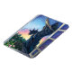 Gargoyle Guardian Art de Traci Van Wagoner impressões, posters, acessórios e presentes mostra um gárgula de pedra azul e cinza olhando para você desde o alto de sua área acima da cidade no início da manhã com um céu ensolarado texturizado de amarelo, laranja, rosa, violeta e azul. Arranje um guardião de gárgula hoje para te vigiar.