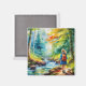 Esta é uma imagem de aquarela de uma menina caminhando perto de um riacho em uma floresta. Ele tem cores lindas e pareceria um excelente em uma mesa ou em qualquer lugar que você quiser. Só de olhar para ele me ajuda a me sentir mais à vontade.