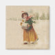 O inverno está frio! Este é um doce tema de Natal - uma trabalho de arte da época vitoriana, esta pintura de menina de Natal mostra uma criança feliz na neve.