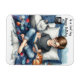 Um cartão para um jovem legal que adora ler livros e sair com seus gatos. Uma cena com um menino sentado de pernas cruzadas na cama lendo um romance com seus dois gatos enquanto ouvia sua música. Feliz aniversário, legal cara!