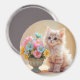 Tabby Kitten com Buquê de Pastel Flowers. Aqui Gatinho, Gatinho.