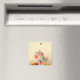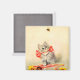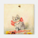 Magnet que apresenta o Kitten trabalho de arte de Meta Plückebaum com um Friso Vermelho (b. 1876). Uma gatinha cinza com listras escuras é lindamente adornada com uma fita vermelha. O gatinho brinca com uma abelha. Flores amarelas decoram o primeiro plano. Um presente maravilhoso para amantes de gatos e entusiastas de arte alemães!