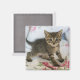 Um imã com uma fotografia engraçada de um gato de mesa. Cabelo nas costas ligeiramente levantado e tem uma expressão surpreendida no rosto. Bonita e adorável. Faz você sorrir. :)