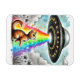 Um gatinho de gengibre acolhe um OVNI com feixes de aquarela arco-íris