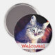 Uma fotografia de um gatinho nas vigas foi alterada digitalmente. Preencha o campo modelo com seu texto, remova o texto e o bar de fundo branco ou clique no botão Personalizar! para selecionar um estilo de fonte, tamanho e cor preferidos. Esta design também está disponível no ímã quadrado.