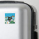 Adorável arte digital de um gatinho negro com olhos verdes enormes sentados em um jardim de margaridas, borboletas e abelhas.