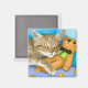 Esta é uma imagem de uma das minhas pinturas originais. Gato bonito com ursinho de pelúcia!