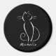 Gato branco minimalista num ímã preto de fundo. Personalize este ímã elegante com o seu nome.