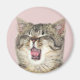 Um gatinho de mesa marrom com a boca aberta numa grande língua enrolando bocejo, ou talvez ele esteja cantando para você, foto-ímã.