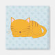 O adorável design apresenta uma doce ilustração de um gatinho de mesa laranja tirando uma soneca em um corações rosa ou azul giro e um padrão de pata.