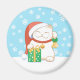 Íman Gato de Natal Branco num Chapéu Vermelho