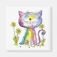 Íman Gato Feliz Esbranquiçado e Bonito com Flores Amare