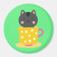 Gato fofo desenho animado em xícara de chá. Desenho infantil em cores pastéis para presente ou decoração infantil. Fundo verde menta em alguns produtos. Tema de animal fofo. Gatinho adorável.