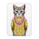 Este design apresenta um retrato de gato em uma camisa de verão e lei havaiana.