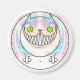 Magnet com um gato gordo sorrindo como um Gato Cheshire. Um gato geométrico e gordo.
