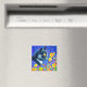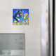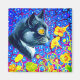 Magnet, com a pintura de animais de Louis Wain Cat, no Mar de Flores (1860-1939). Um gato preto e branco com olhos ouros cheira a flores amarelas. No fundo roxo estão flores azuis. Um presente maravilhoso para amantes de gatos e arte inglesa.