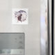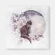 Íman para eventos com uma pintura aquosa de um gato preto e um buquê floral roxo e rosa claro. Em frente a uma grande lua de cheio. Na moda e mágico.