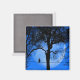 Lua azul de cheio fantástica com um gato preto em fio olhando para ele