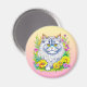 Gato Pérsico branco e giro rodeado por flores amarelas e cor-de-rosa, a aquarela botânica.