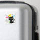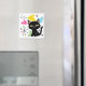 Ilustração colorida do estilo do Meio século abstrato com gato preto, estrelas pretas e formas geométricas coloridas decoradas sobre fundo branco