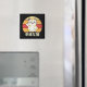 Ilustração colorida com design de texto de "Gato Sortudo" em japonês e um gato Kawaii criando uma decoração manual sobre fundo retro listrado