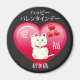 Gato Sortudo, bonito e humorístico (Maneki Neko) com coração e balões para Dia de os namorados. Tradução japonesa: "Feliz dia de os namorados" no topo, "Maneki Neko" no fundo, "Amor" à esquerda e "Sorte" à direita no coração.