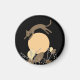 O gato marrom está voando sobre a lua, e plantas de jardim decoram a cena noturna. Um padrão perfeito em um fundo preto.