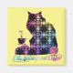 Suas paixões incluem, gatos, colcha e café? Aqui está uma imã de geladeira para governá-los a todos! Apresentando uma silhueta de gato, de cabelos longos, uma xícara de café de abstrato a vapor e o texto, Gatos, colcha e café. Que presente bonito para aquele gato louco, viciado em café, colorido.