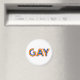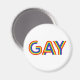 Este trabalho de arte apresenta a palavra Gay em uma fonte colorida do arco-íris.