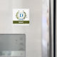 Uma delicada coroa de hera com um laço listrado azul é sobreposta a um fundo branco fresco. O design apropriado para casamento apresenta o monograma "D" em azul. O ímã pode ser personalizado com qualquer nome sobre a faixa de fita verde. Dica de design: Para a fonte mostrada aqui, use letras maiúsculas para o nome.