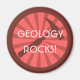 Este logotipo geológico estilo crachá apresenta um martelo rochoso em vermelho escuro em frente a um design de explosão solar avermelhada. Sobretudo esta é a frase personalizável "Geology Rocks!" em uma rosa claro, deco artístico, tipo industrial. O estilo de mensagem e fonte pode ser personalizado, como você desejar. Personalize com seu nome! Diga "Amanda Rocks!" ou "Hammer This!" ou o que você quiser! Faça deste seu crachá geológico personalizado!
