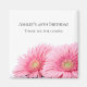 Obrigado de aniversário, seu imã com uma fotografia de um par de margaridas rosa de gerbera. Elegante e na moda.